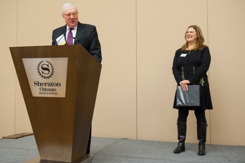 The Illinois Bar Foundation hosted its Annual Fellows Breakfast on Dec. 13 at the Sheraton Hotel and Towers in Chicago. The Fellows honored Chief Judge Ruben Castillo with the Honorary Fellows Award and Judge Roger Fein with the Distinguished Service to Law and Society Award.