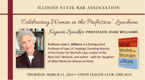 Please save the date for the Illinois State Bar Association's "Celebrating Women in the Profession Luncheon" on Thursday, March 13 at the Union League Club in Chicago.