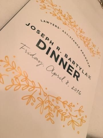 The Hon. John Gorman, was honored at the 2015 Lawyers’ Assistance Program Joseph R. Bartylak Award Dinner on Friday, April 8, at the Sangamo Club in Springfield. Matthew Hutmacher received the President's Award. Illinois Supreme Court Chief Justice Rita B. Garman served as the keynote speaker.