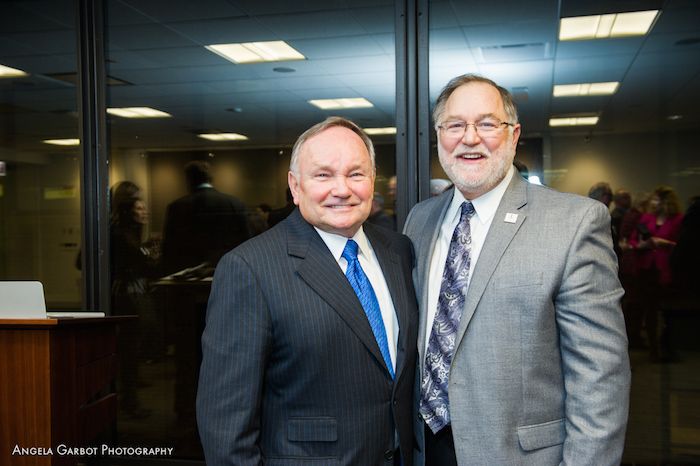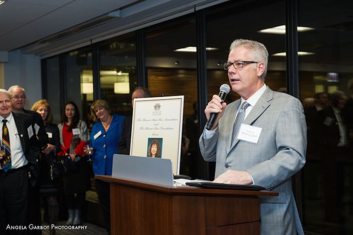 Professional Achievement Reception honoring Jeanne Heaton, ISBA director of CLE, and Robert Craghead, ISBA executive director, on Feb. 7, 2018.