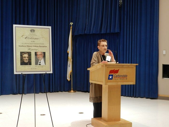 The Fellows of the Illinois Bar Foundation honored Eugenia C. Hunter and posthumously honored Hon. David W. Watt, Jr. at the Southern Illinois Fellows Reception on May 10, 2018, in Carbondale.