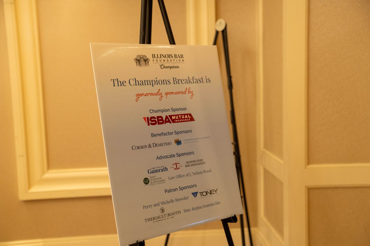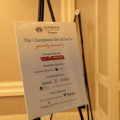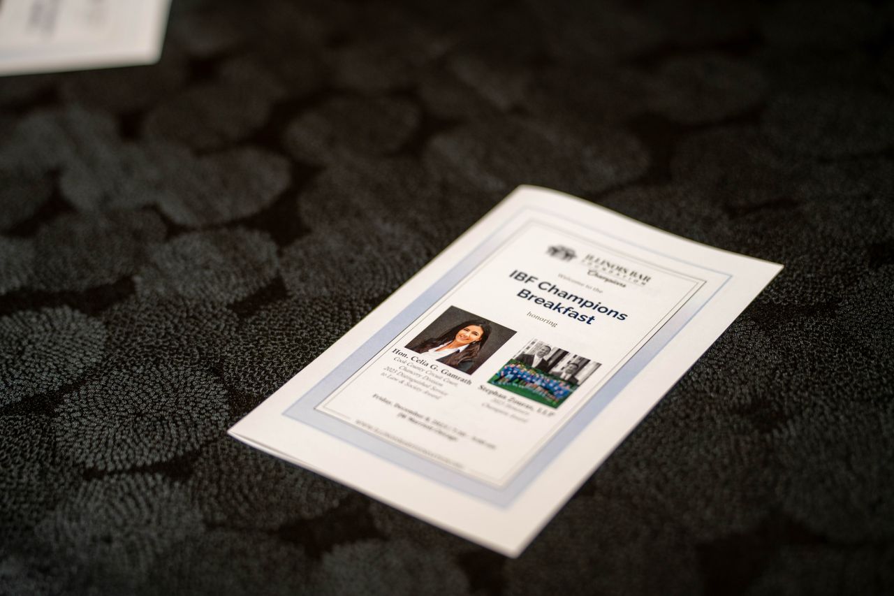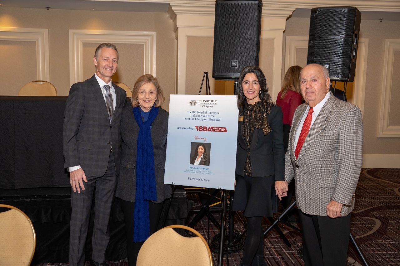 The IBF’s Champions Breakfast was held on December 8, 2023, in conjunction with the ISBA Midyear Meeting, honoring Judge Celia Gamrath with the 2023 Distinguished Service to Law & Society Award as well as the law firm of Stephan Zouras LLP with the 2023 Honorary Champion Award.