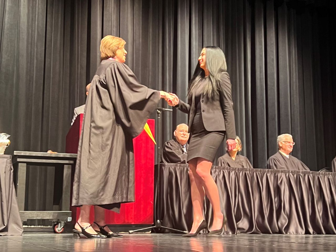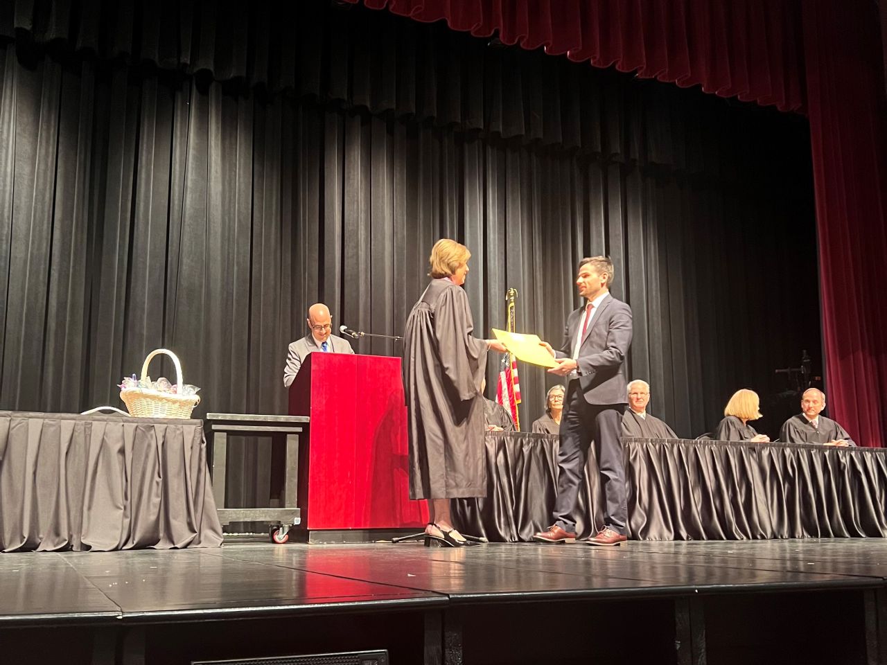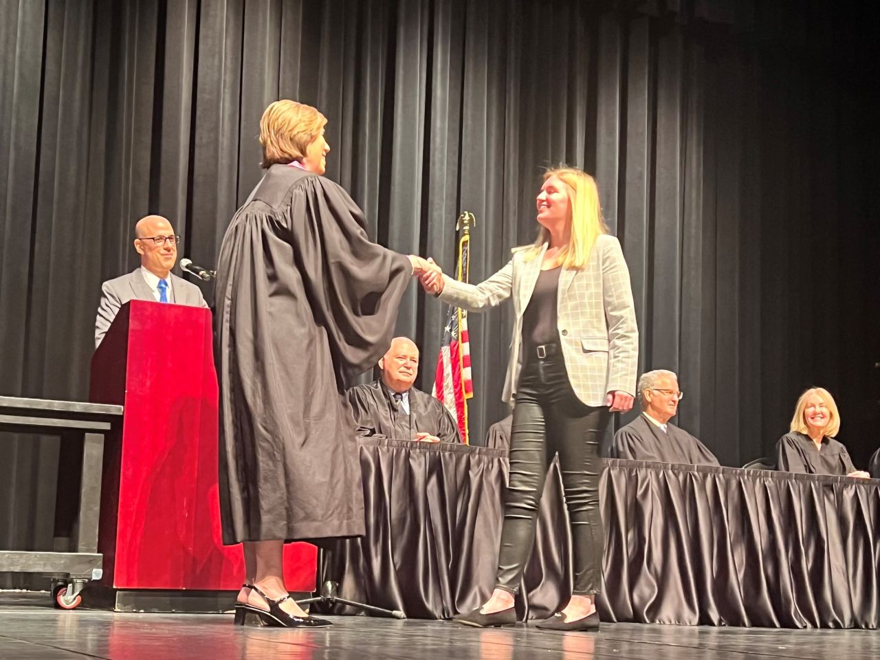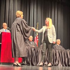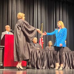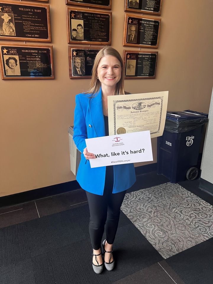 On May 8, 2024, 13 new lawyers were admitted to practice in the Second District of Illinois. The ceremony was held at the Hemmen’s Memorial Building Auditorium, 150 Dexter Court, in Elgin. Illinois Supreme Court Justice Elizabeth M. Rochford presided over the ceremony. Illinois State Bar Association Treasurer Sarah Toney spoke at the ceremony.