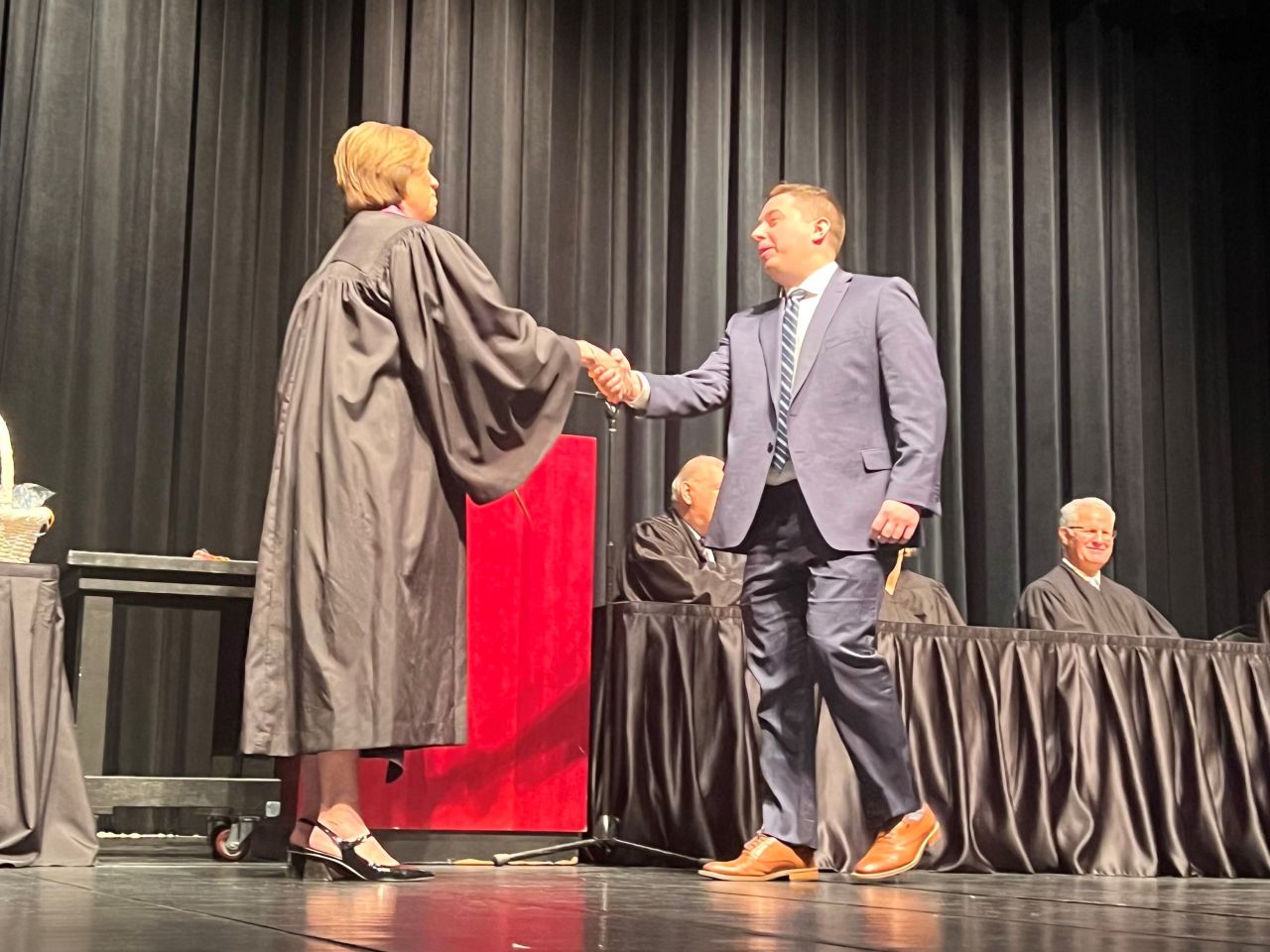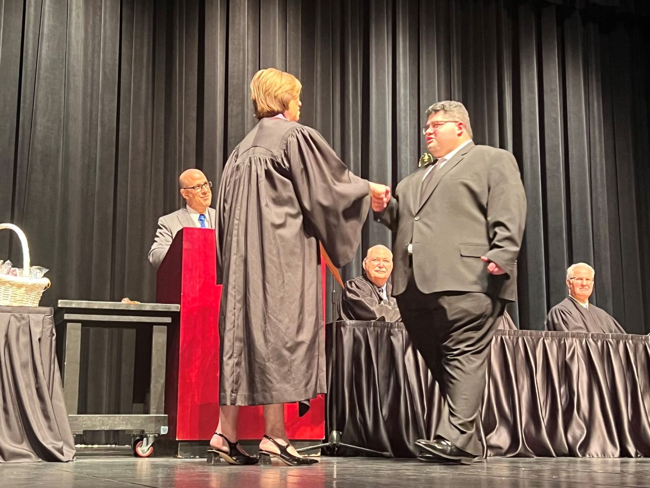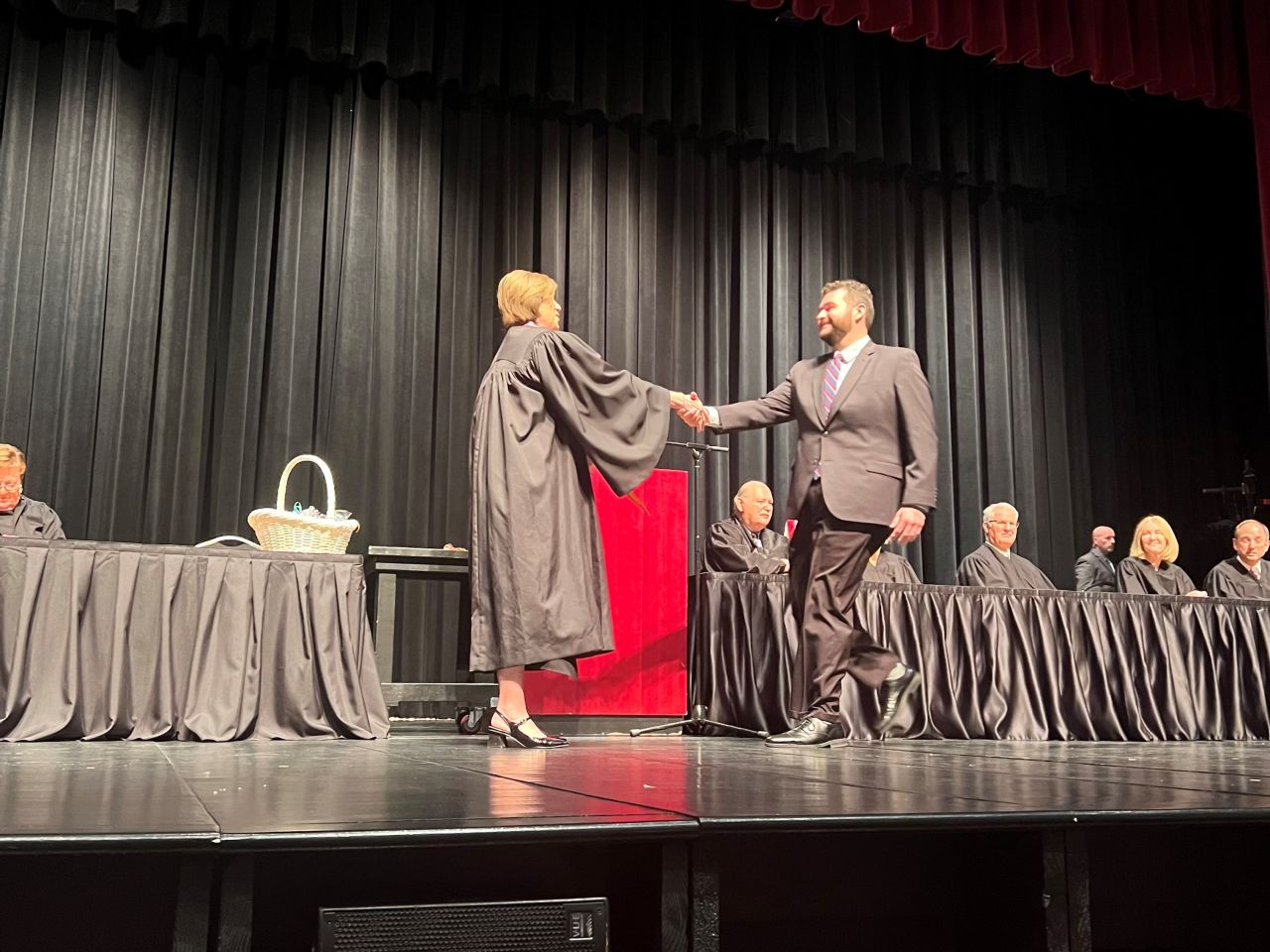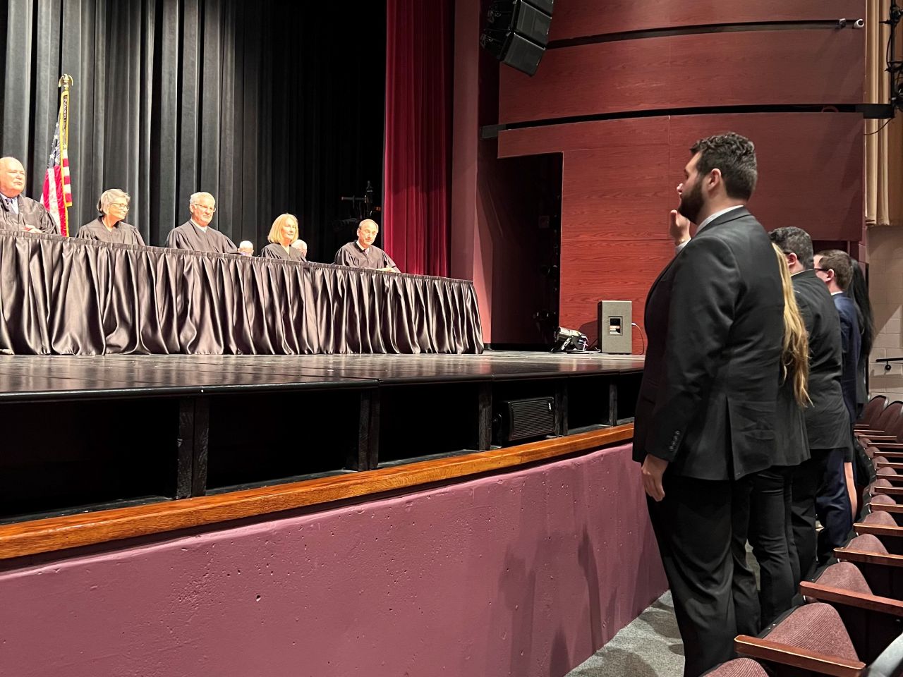 On May 8, 2024, 13 new lawyers were admitted to practice in the Second District of Illinois. The ceremony was held at the Hemmen’s Memorial Building Auditorium, 150 Dexter Court, in Elgin. Illinois Supreme Court Justice Elizabeth M. Rochford presided over the ceremony. Illinois State Bar Association Treasurer Sarah Toney spoke at the ceremony.