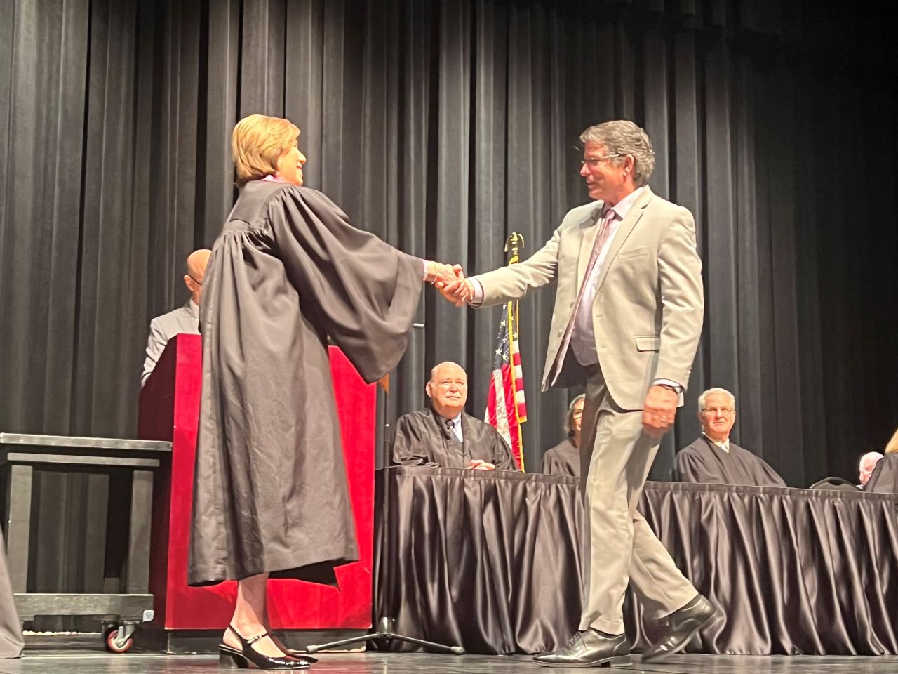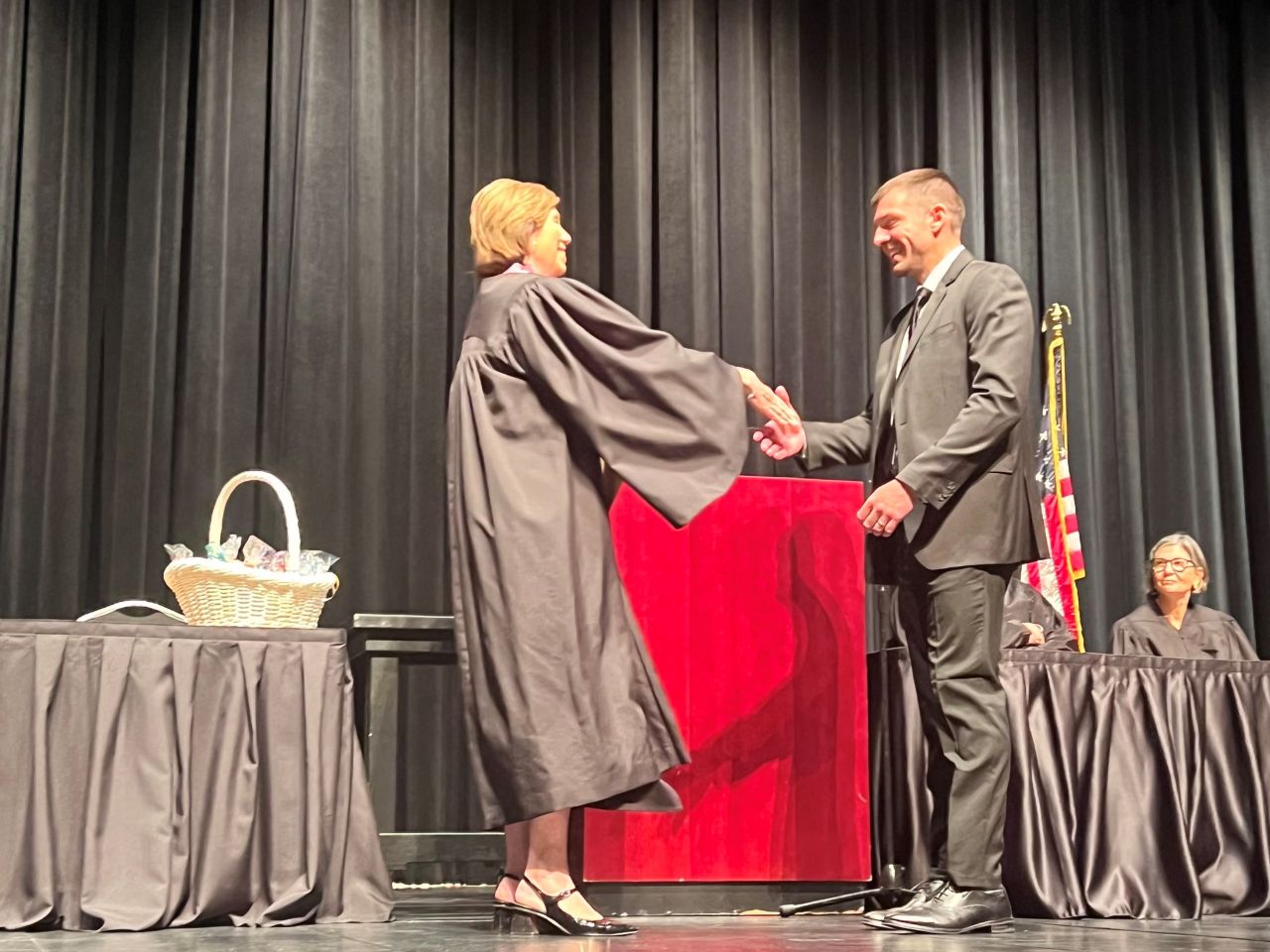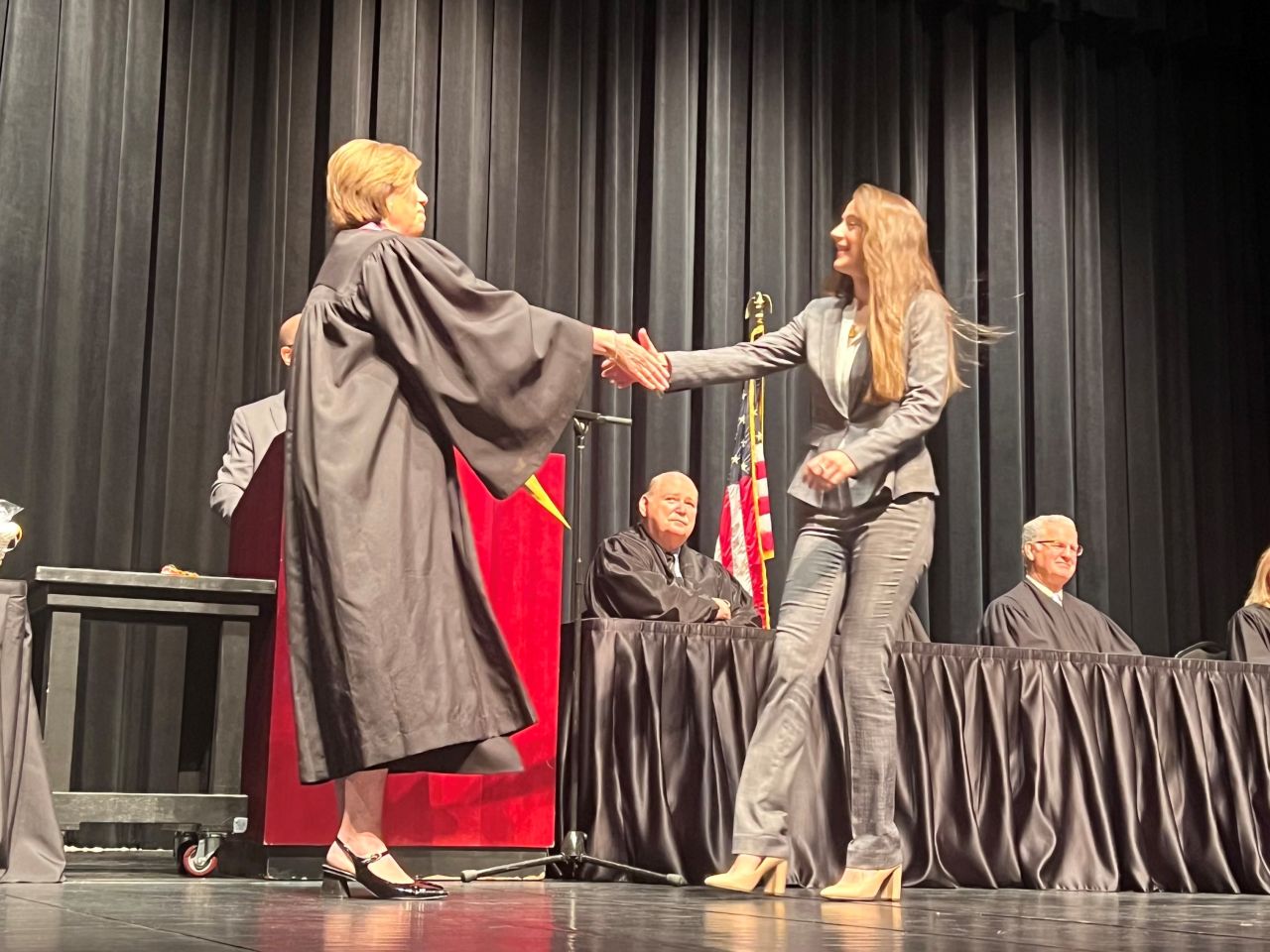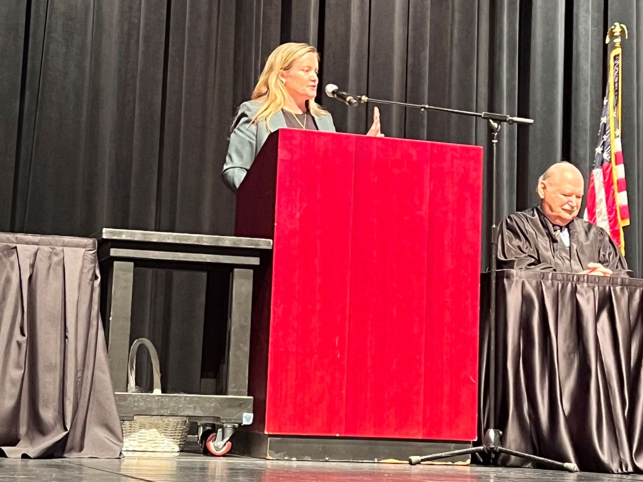 On May 8, 2024, 13 new lawyers were admitted to practice in the Second District of Illinois. The ceremony was held at the Hemmen’s Memorial Building Auditorium, 150 Dexter Court, in Elgin. Illinois Supreme Court Justice Elizabeth M. Rochford presided over the ceremony. Illinois State Bar Association Treasurer Sarah Toney spoke at the ceremony.